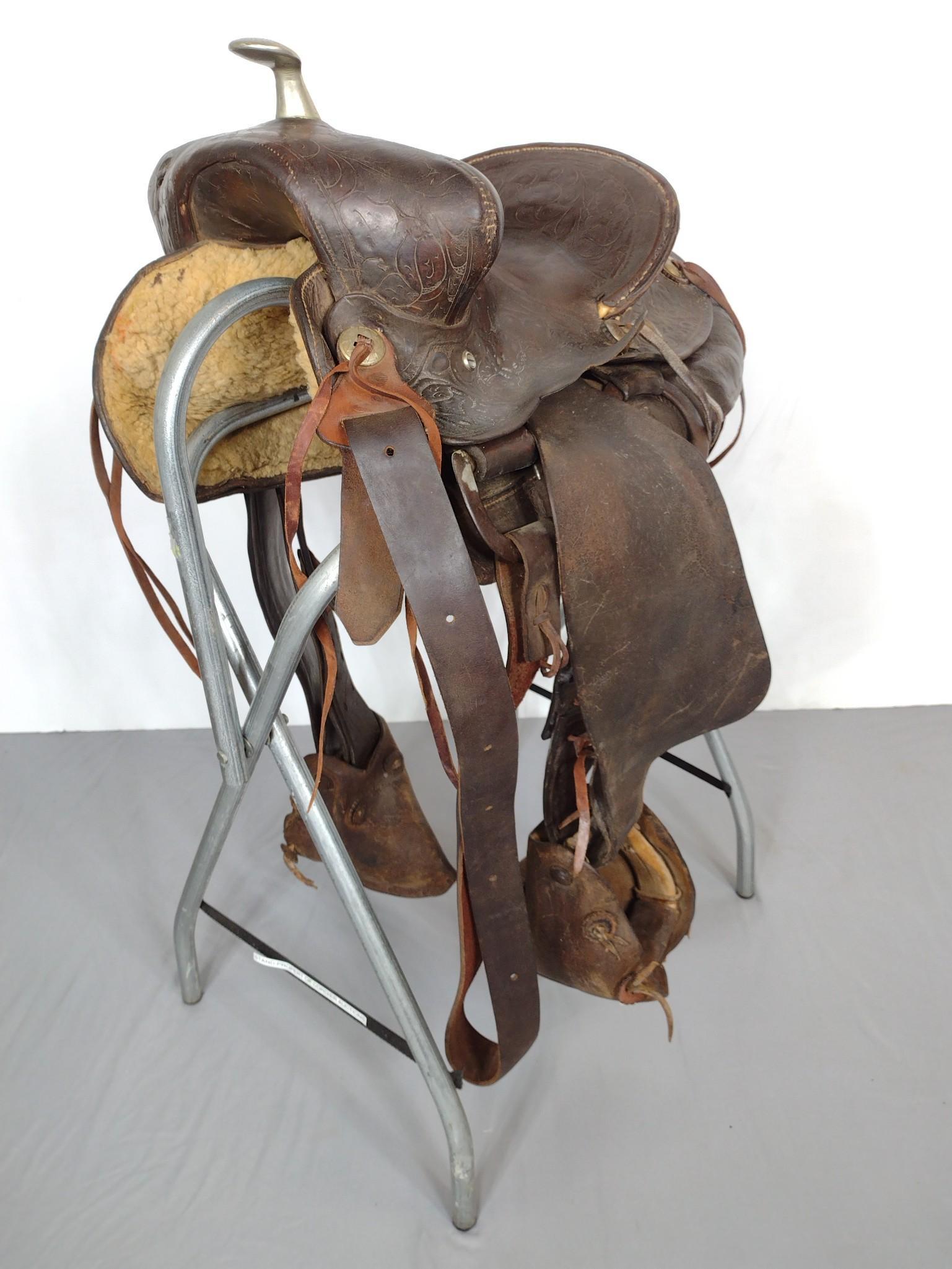 Group Lot: Flare Pistol, Leather Cartridge Pouch, and .38 Caliber RevolverMar 07, 2026Set 3 Antique George Hay Plank Bottom Chairs6 days LeftSwedish Mauser Model 1910 bandolierSalesman sample horse-drawn diskMar 27, 2026J.J. CROFT CUSTOM WESTERN SADDLEMar 18, 2026PORTER SADDLE CO., PHOENIX SADDLEMar 18, 2026Well-Made Western Roping Saddle with Deep Seat and Leather-Wrapped Horn2 days LeftA VERY NICE D. W. HORNOR OREGON SADDLEMar 18, 2026BASKET STAMPED SADDLE BY LICHTENBERGER FERGUSON CO.Mar 18, 2026Vintage American Western Saddle h.h. Heiser 1920sA DECORATIVE STUDDED R. T. FRAZIER SADDLEMar 18, 2026GROUP OF SADDLE, REATA AND TWO WOODEN SADDLE STANDSMar 18, 2026Black Leather Western Style Saddle, Ace Saddlery, Australia, 20th c., Overall- App. H.- 39 in., App.Feb 27, 2026Saddle Grouping2 days LeftVintage Stubben Siegfried Swiss Leather Saddle Circa 19906 days LeftRustic Vintage Moroccan Tuareg CAMEL SADDLE with Bell2 days Left