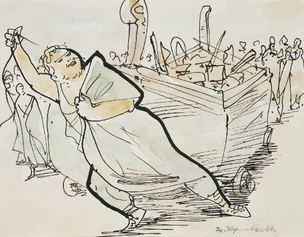 SoldJosef Hegenbarth (1884-19Josef Hegenbarth (1884-1962), pigs and chicken / foal. Around 1955. 2 pen and ink drawings / chamois-colored light cardboard [painted on both sides], recto with pen and ink. re. sign. Josef HegenbarthSee Sold Price