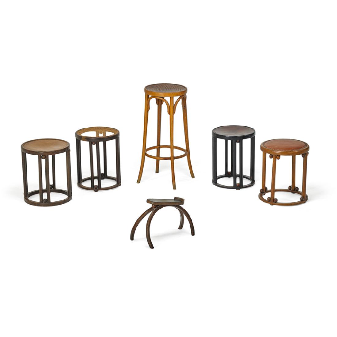 JOSEF HOFFMANN ETC. Five stools, one shoe stand