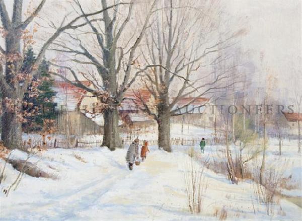 SoldJOSEF PROCHAZKA (CZECH, 1909-1984), OIL ON CANVAS, H 19.5", W 27.5", WINTER SCENEJOSEF PROCHAZKA (CZECH, 1909-1984), OIL ON CANVAS, H 19.5", W 27.5", WINTER SCENE Signed lower right. Framed H 26.75", W 34.75".See Sold Price