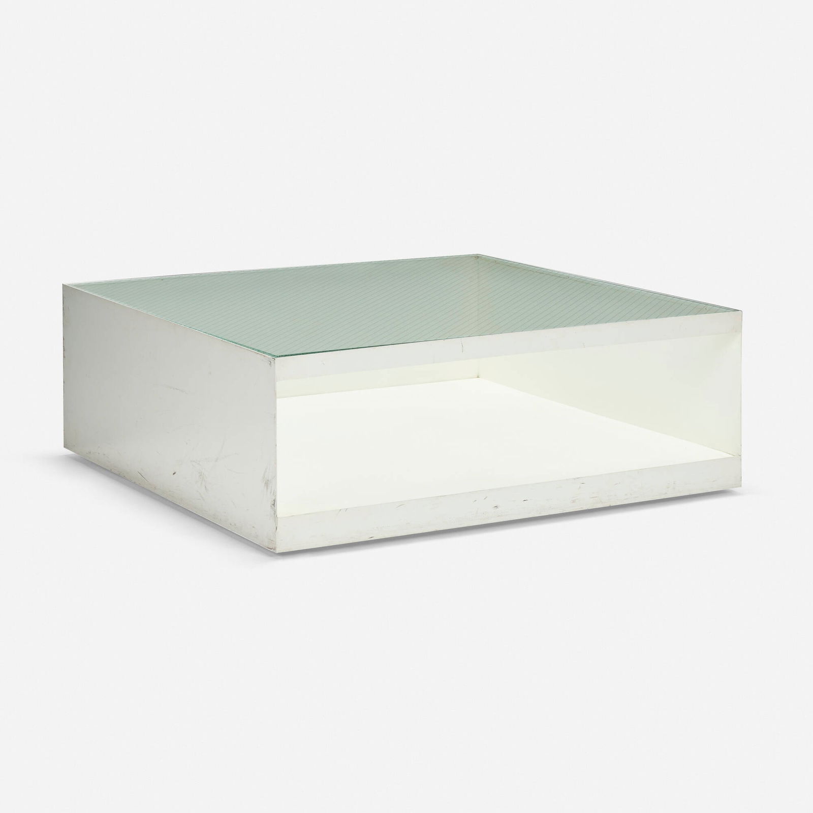 SoldJoseph D'Urso, Low rolling table, model 6048TJoseph D'Urso Low rolling table, model 6048T Knoll InternationalUSA, 1981stainless steel, safety glass 14.5 h x 48 w x 48 d in (37 x 122 x 122 cm) Literature: Knoll DSee Sold Price