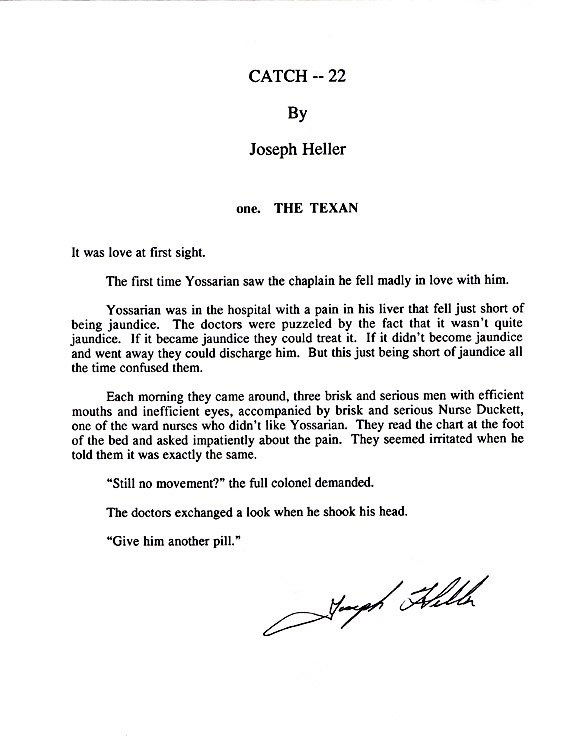 Joseph Heller Singed "Catch-22" Typescript UACC PA