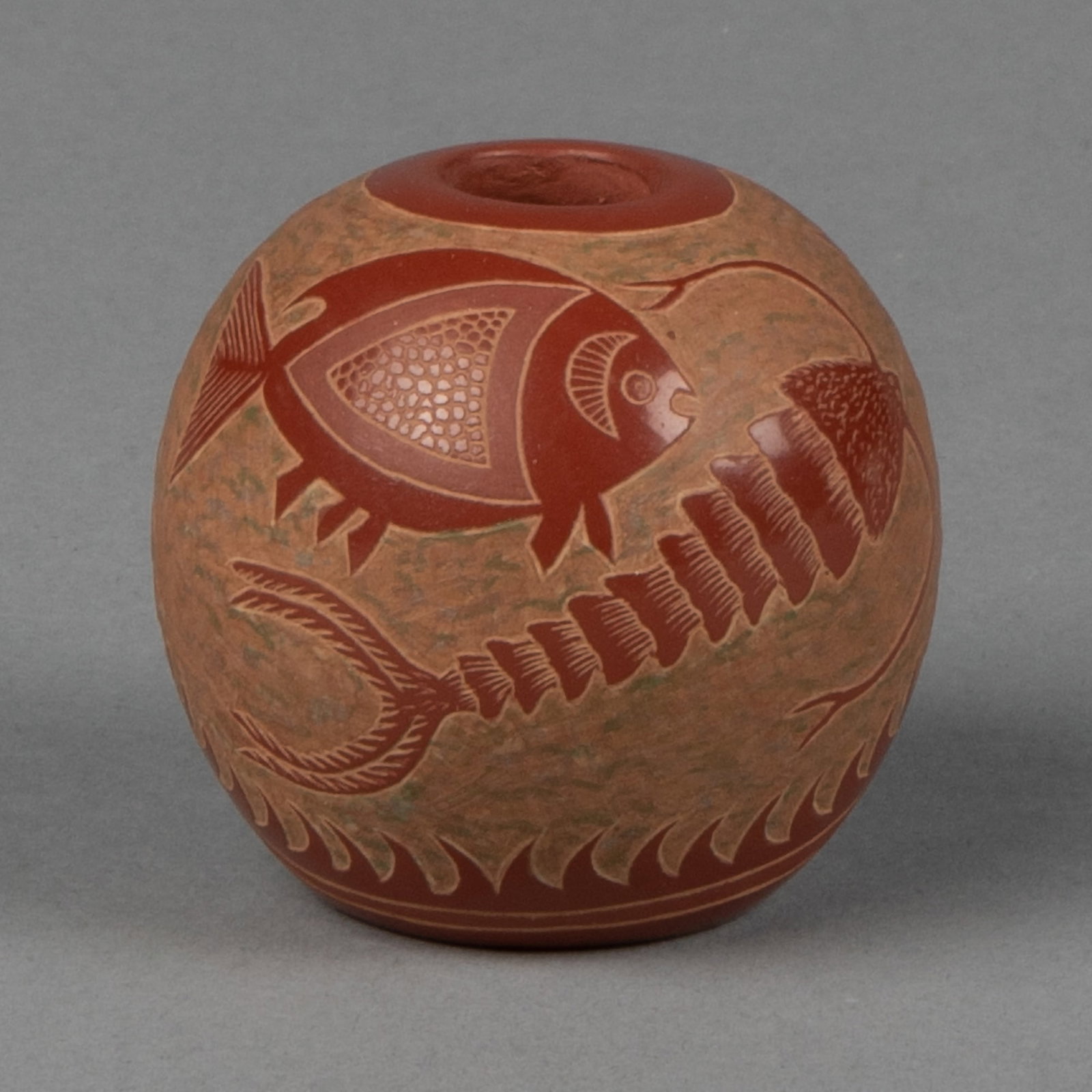 Joseph Lone Wolf, Sgraffito Redware Jar, 1974