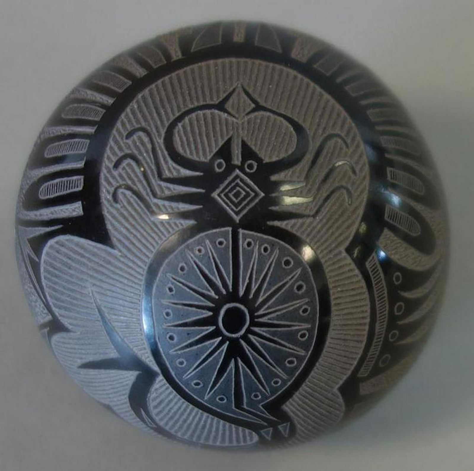 Joseph Lonewolf Blackware Sgraffito Seed Pot, 1977