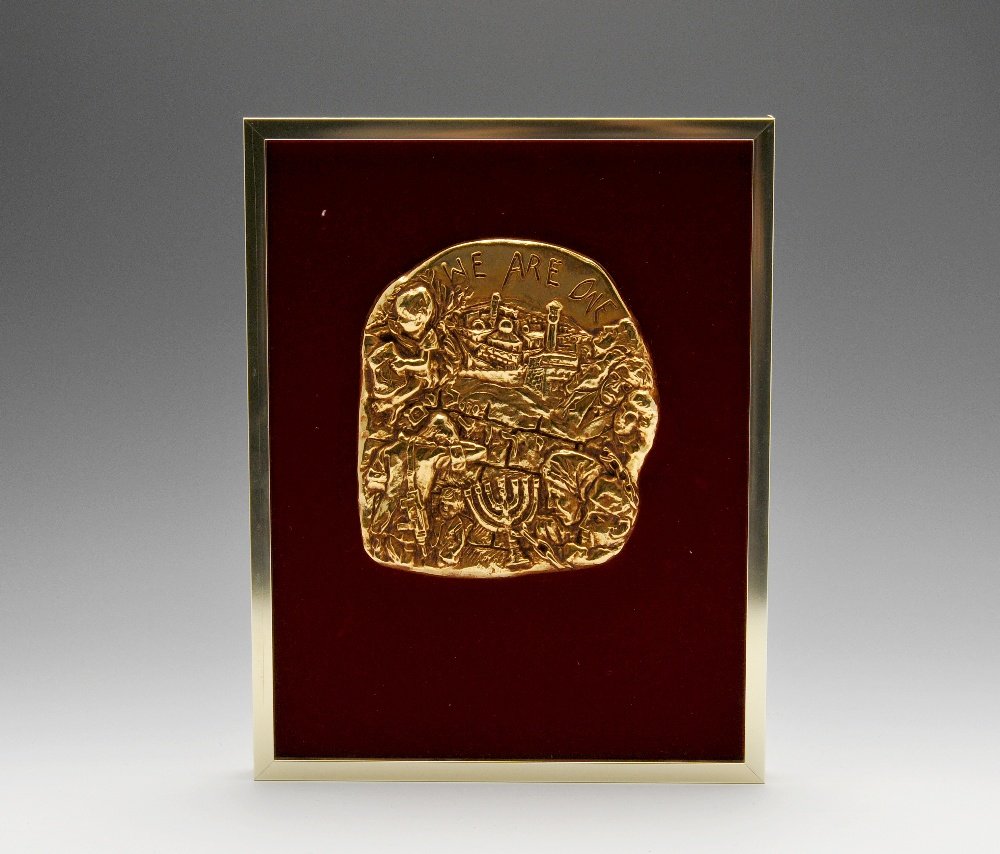 Judaica metal wall plaque.