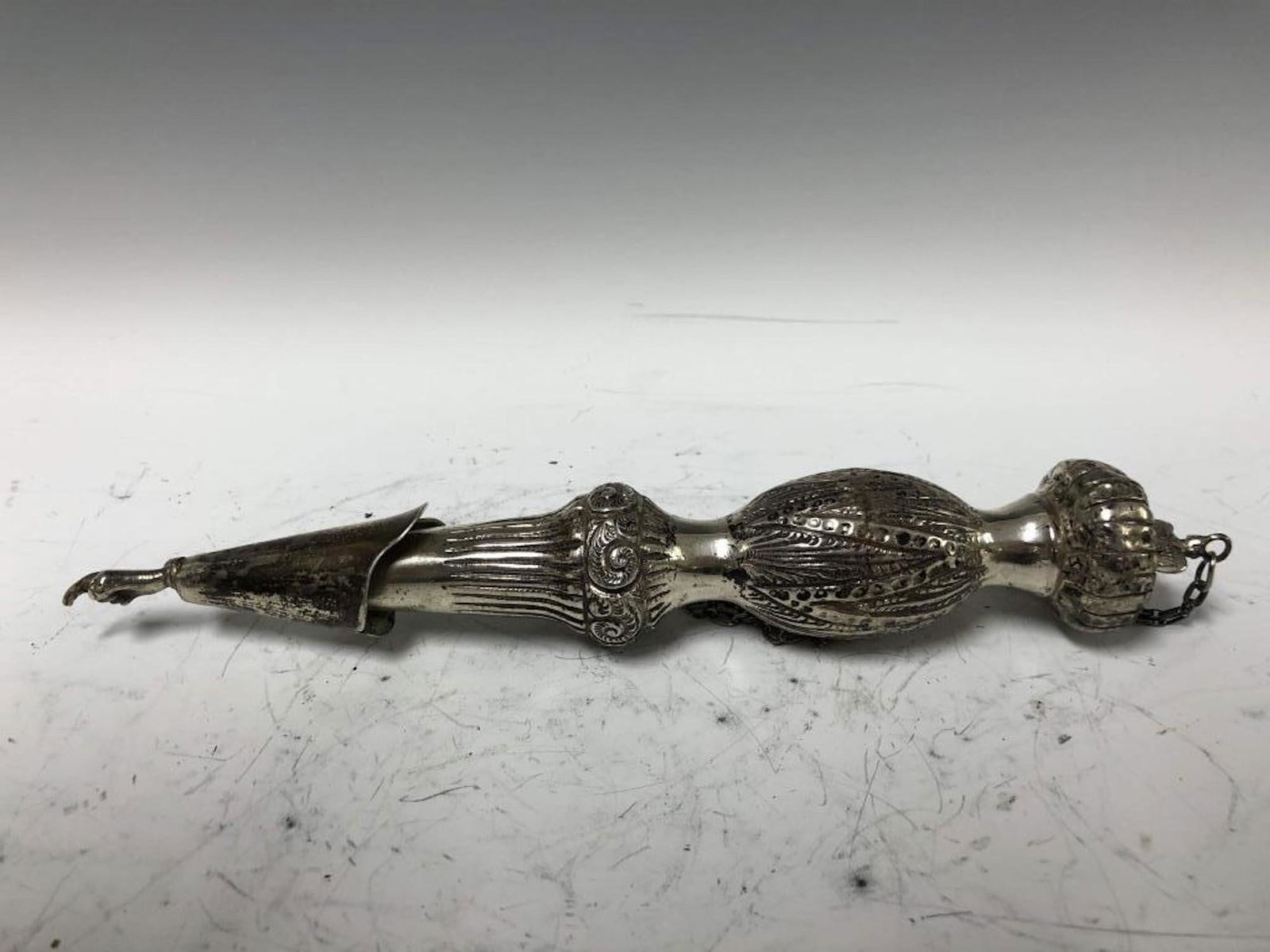 Judaica Large Sterling Silver Torah PointerMar 18, 2026Judaica Unusual Sterling Silver Torah PointerMar 18, 2026Fine Antique Judaica Torah pointer Sterling Silver5 days LeftJudaica Rare Russian Silver & Enamel Torah PointerMar 18, 2026Queen Anne Style .800 Silver Candlestick4 days LeftJudaica Unusual Large Silver Besamim Spice BoxMar 18, 202619th-century Russian Sterling Silver Torah pointerMar 15, 2026Vintage Sterling Silver Ballpoint Pen,"Tribes of IMar 15, 2026Antique Eastern European Sterling Silver Torah Pointer Yad 1880-1920 with Hebrew Inscription5 days LeftIntricate 925 Sterling Silver Handmade Torah Pointer 9.50 Inches7 days LeftJUDAICA HAZORFIM SILVER SHAKERMar 21, 2026Victorian English Sterling Tussie Mussie by Horton & Allday with Fox TrophyMar 15, 2026STERLING SILVER GORHAM SCISSORS IN SHEATHMar 15, 2026Sterling Silver Jewish Judaica Hebrew Mezuzah PendantMar 22, 202617th - 18th C. Islamic / Mughal Indian Bhuj Battle Axe Sword with Threaded Spike & TubularMar 14, 2026VINTAGE CANTERBURY SILVER PLATE TABLE TOP LIGHTER6 days Left
