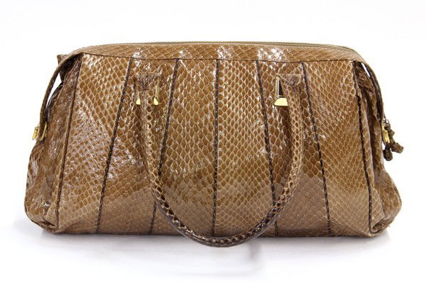 Dolce & Gabbana Brown Python Snakeskin Top Handle Travel Bag