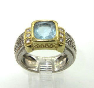 Judith Ripka Silver/18K Gold, Blue Topaz Ring