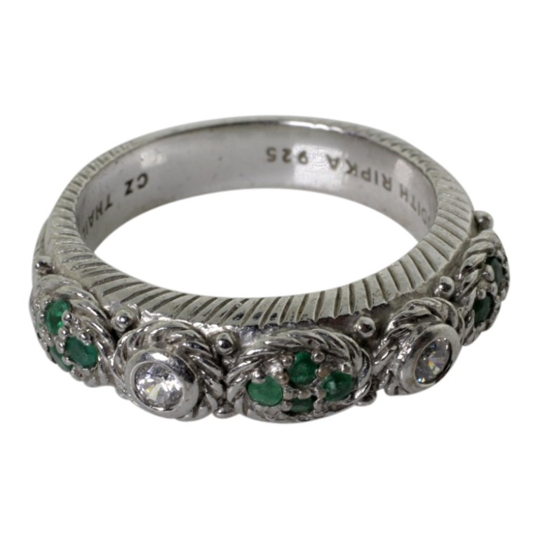 SoldJudith Ripka Sterling Silver & Gemstone RingJudith Ripka Sterling Silver & Gemstone Ring. Stamped and hallmarked interior. Size 8, together with a silver band.See Sold Price