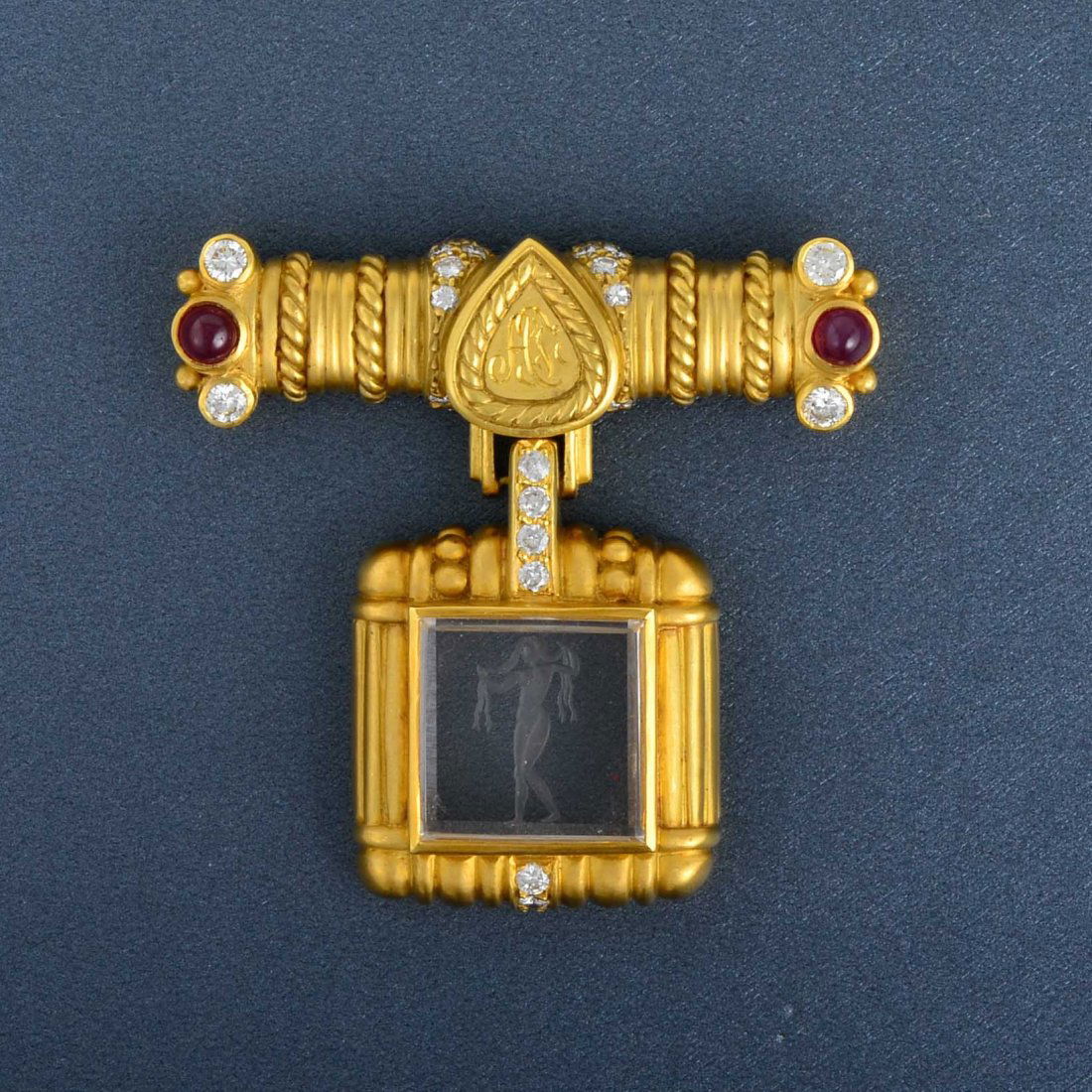 18K Yellow Gold and Silver 6.25ct Diamond and Ruby BroochEastern European Art Gallery Inc$5004 days Left