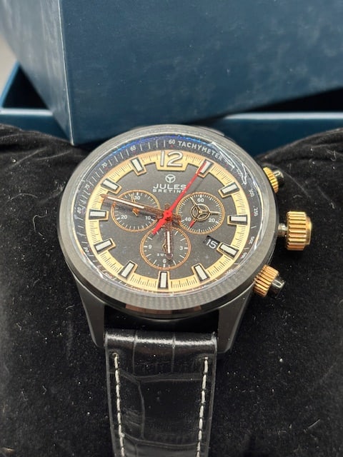 BREITLING CHRONOMAT BIKORO DATE GOLD DIAL AUTOMATIC WATCH WRIST WATCHMar 13, 2026Sonne Chronograph Black and Rose Gold Sports Watch 38x41mm, 2010s, Working6 days LeftMens L.A. Banus Blackjack King Deep White Dial Stainless Steel Band WatchMar 12, 2026Diesel DZ4309 Oversized Chronograph Black Rose Gold 53mm Men Watch, 2014 to 2017, Working6 days LeftWristwatch Louis VuittonMar 12, 2026Wristwatch Citizen6 days LeftBREITLING SUPER CHRONOMAT BLACK DIAL WATCH3 days LeftGevril Dual Time Moon Quartz Watch M0111R1 Black Leather Band898 Lots AwayBREITLING CHRONOMAT WATCHMar 22, 2026Vintage Men's Wristwatch by Christophe Skye - Skeleton Works - New in Box4 days LeftBreitling Avenger Seawolf E17370 44mm Yellow Dial Titanium Rubber Strap2 days LeftCASIO OCEANUS 15TH ANNIVERSARY MODEL OCW-T3000C-2AJF MEN'S WATCHJul 08, 2025Bulova Black Ion-Plated Diver-Style Wristwatch (Ref. 65B114)Mar 15, 2026Wristwatch Chanel6 days LeftBlue Dial Breitling Chronomat B13050.1 Leather Strap Watch2 days LeftStainless Steel Breitling Superocean A17040 Automatic Watch With Box899 Lots Away