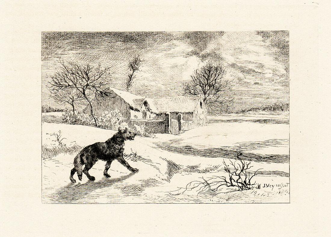 Jules Jacques Veyrassat Wolves I 1871 Etching Signed