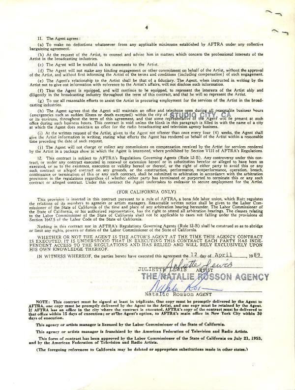Juliette Lewis Document Signed UACC PADA