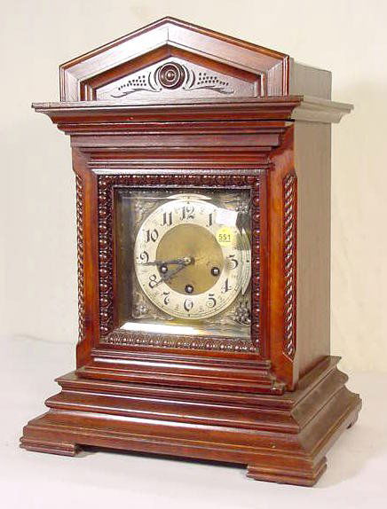 Junghans Mahogany Chime Shelf Clock w/5 Rods