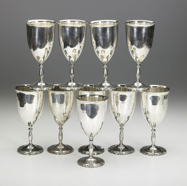 Lot Of 6 Vintage Arte Italica Crystal Goblets And Champagne Cups With Gold Trim4 days LeftLot of 8 Crystal Glass Water Wine GobletsFeb 27, 2026Set 6 Iresiner Pewter Etched Monogram Wine GobletsFeb 25, 202616 STERLING WATER GOBLETS, 60 T.O.W.Mar 07, 2026Set of six Gorham sterling silver wine / water goblets with gilt interior, 28.457 ozt. 6 1/2"H x 34 days LeftA set of eight silver goblets Frank Roger Clark, London 1973Six Mexican Sterling Silver Repousse GobletsFeb 26, 20266 International Wedgwood sterling water goblets.Feb 24, 20264 Spratling Taxco Silver Goblets & 1 Jigger, Tomas VegaFeb 27, 2026SILVER GOBLETS SET OF 4 VINTAGE ANTIQUE104 Lots AwayA set of ten Newport sterling silver gobletsMar 03, 202623 Stieff Sterling Goblets & CordialsFeb 26, 202612 STERLING CHAMPAGNE COUPS, 43.8 T.O.W.Mar 07, 2026Set of Ten Wilton Armetale Pewter Goblets Tavern Colonial Style Drinking Cups1 day Left12 Reed & Barton X155C sterling water goblets.Feb 24, 2026Set of 8 Silverplate Ornate Goblets5 days Left