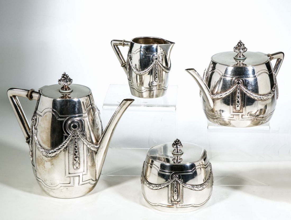 A FOUR-PIECE SILVER 'BAMBOO' TEA AND COFFEE SERVICE, MARK OF ZEE WO, SHANGHAI, CIRCA 1870-1925Mar 11, 2026Manifattura milanese Servizio composto da caffettiera, teiera, zuccheriera e lattiera Metallo9 hrs LeftA six piece German 800 standard silver tea and coffee service, Wilhelm Binder, Schwabisch GmundFeb 25, 2026Gerritsen & Van Kempen Silver (Dutch)Feb 24, 2026German Hand Chased Angkor .900 Silver Tea Service SetFeb 26, 2026Bailey, Banks & Biddle Queen Anne Sterling Tea SetFeb 27, 2026ANTIQUE VICTORIAN AESTHETIC GERMAN COIN SILVER TEA SETFeb 26, 2026Four Piece Chinese Export Silver Tea and Coffee Set, Marked 'C.J'Mar 01, 2026W. Forbes Three Piece Coin Silver Tea Set14 hrs Left19C ANTIQUE RUSSIAN SILVER TEA COFFEE SET SPER 1832Mar 07, 2026Gorham Queen Anne Sterling Silver 5 Piece Tea Set 1850-18996 days Left(8 PCS) ENGLISH STERLING SILVER BEVERAGE SERVICE5 days LeftA GEORGE VI SILVER FOUR-PIECE BREAKFAST COFFEE SERVICE MARK OF ROCHARD COMYNS, LONDON, 1929-19322 days LeftFive Sterling Table Articles5 days LeftLouvre Silver Shop Blossom Mexican Sterling Silver 6pc Tea SetFeb 27, 20263 pcs Vintage Silver Plated Tea Pots, incl. 1x W.W.H. & Co. & 1x Homan. Very Good Condition.