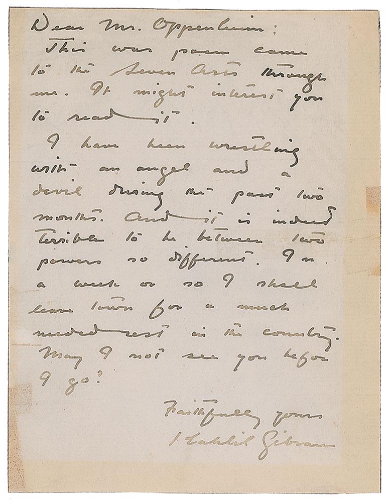 Kahlil Gibran Autograph Letter Signed
