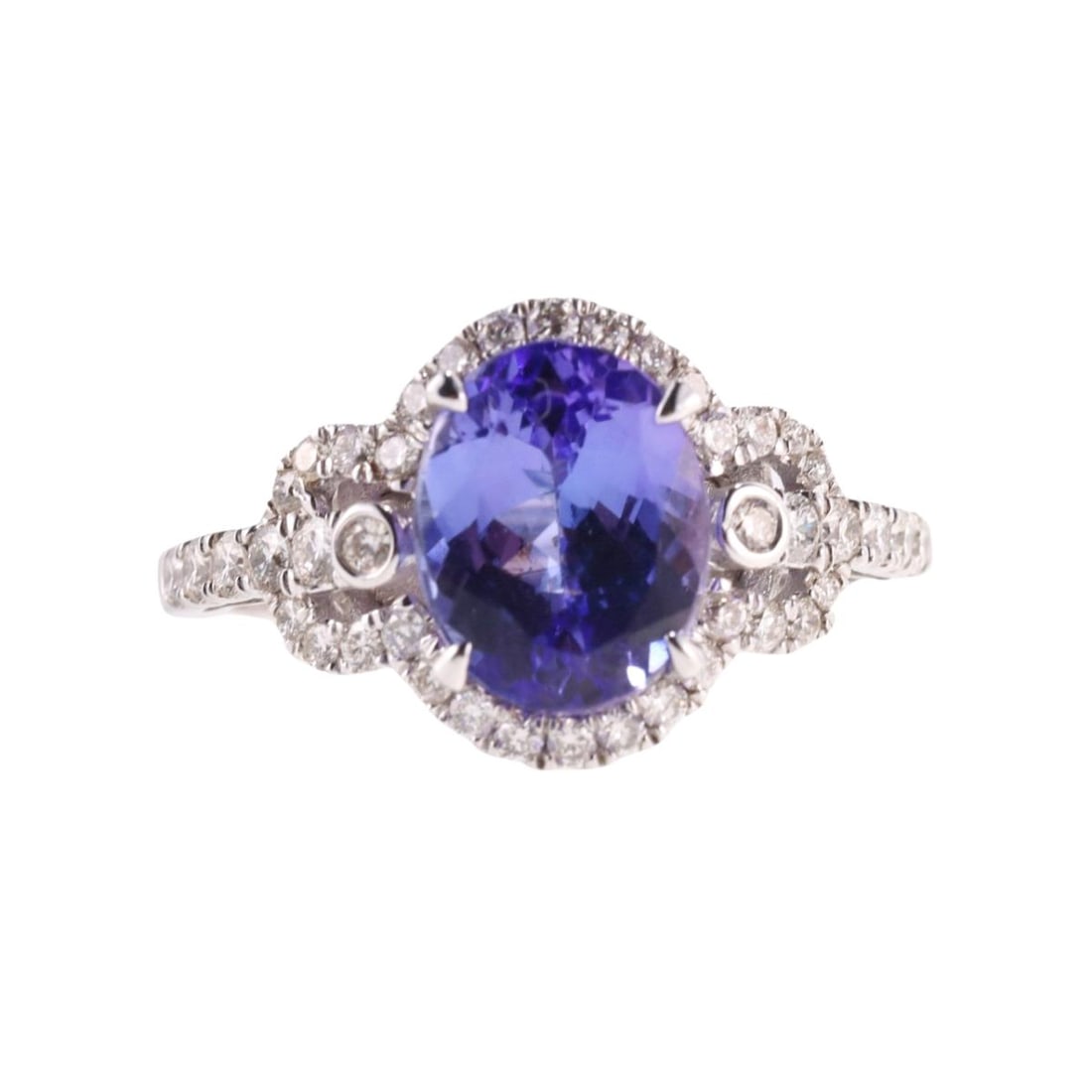 A tanzanite, diamond, and 14k white gold ring