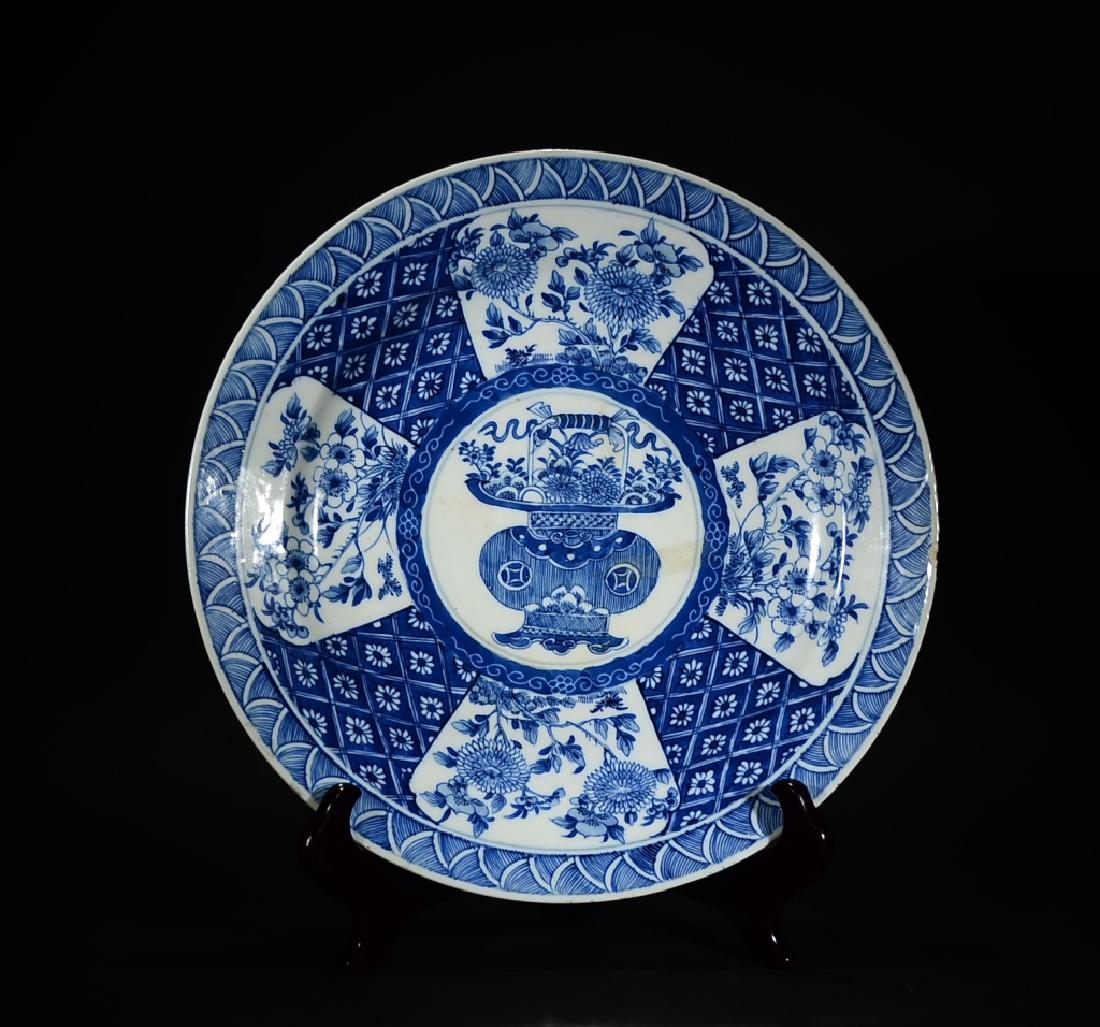 KANGXI MARK, A BLUE AND WHITE DISH