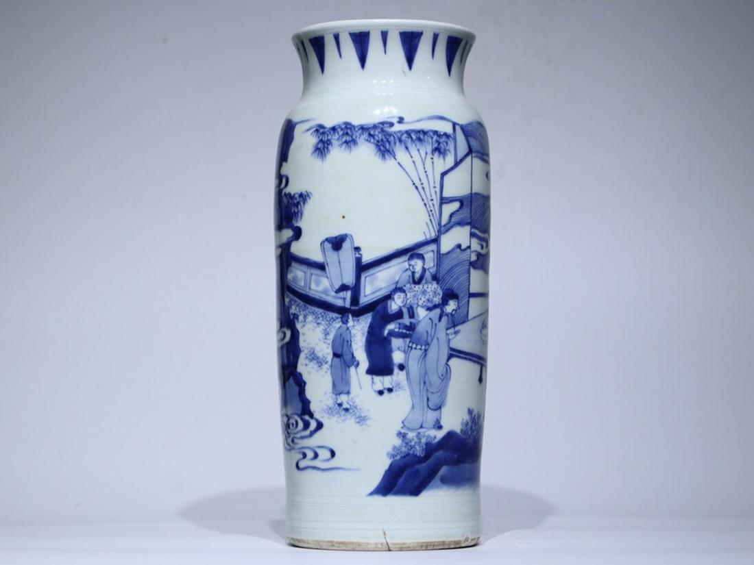 KANGXI MARK BLUE&WHITE GLAZE FIGURE PATTERN VASE