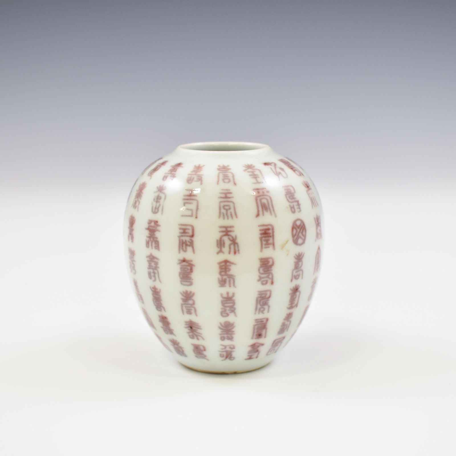 SoldKANGXI RED HUNDRED SHOU SCRIPTS BRUSH WASHERMeasurements: 3-1/4" H x 3-1/8" D. Chinese Qing Dynasty porcelain brush washer. Potted in an ovoid bulbous body, rounded shoulder gently elevated short neck toward the wide opening. hand painted ornamSee Sold Price
