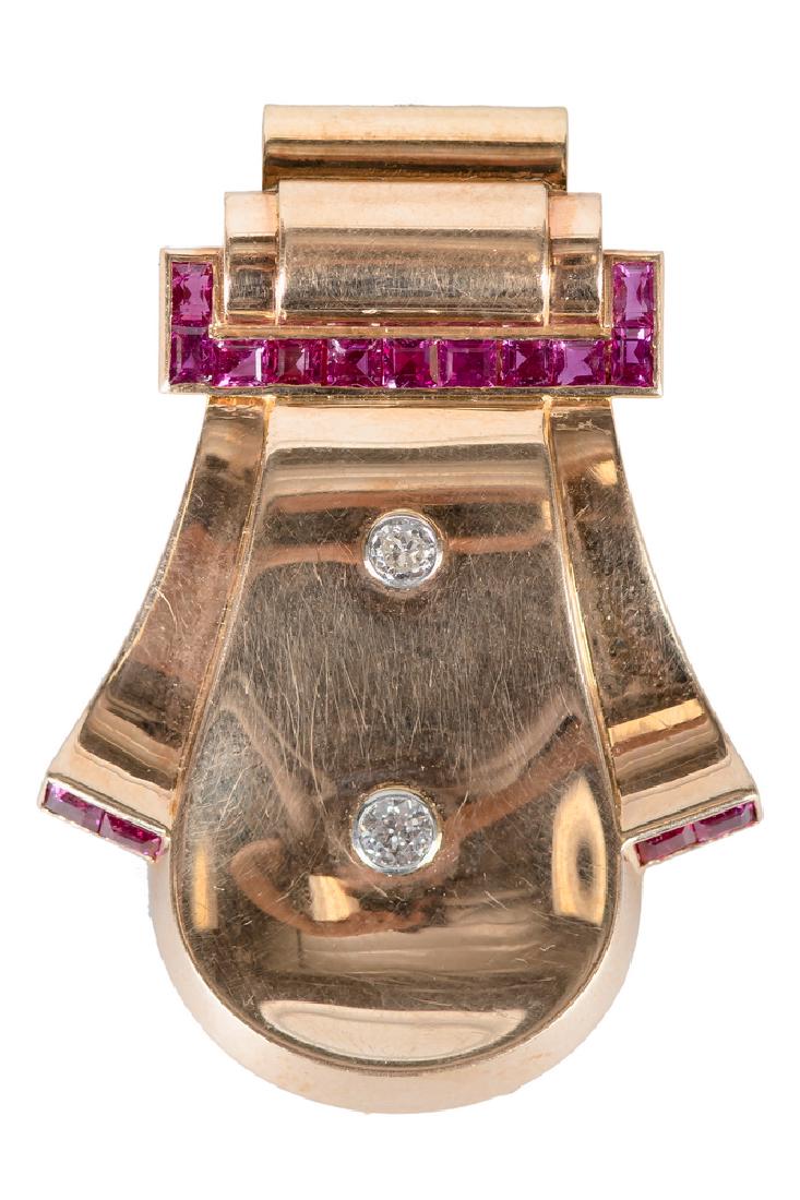 14 KARAT ROSE GOLD, DIAMOND, & RUBY CLIP