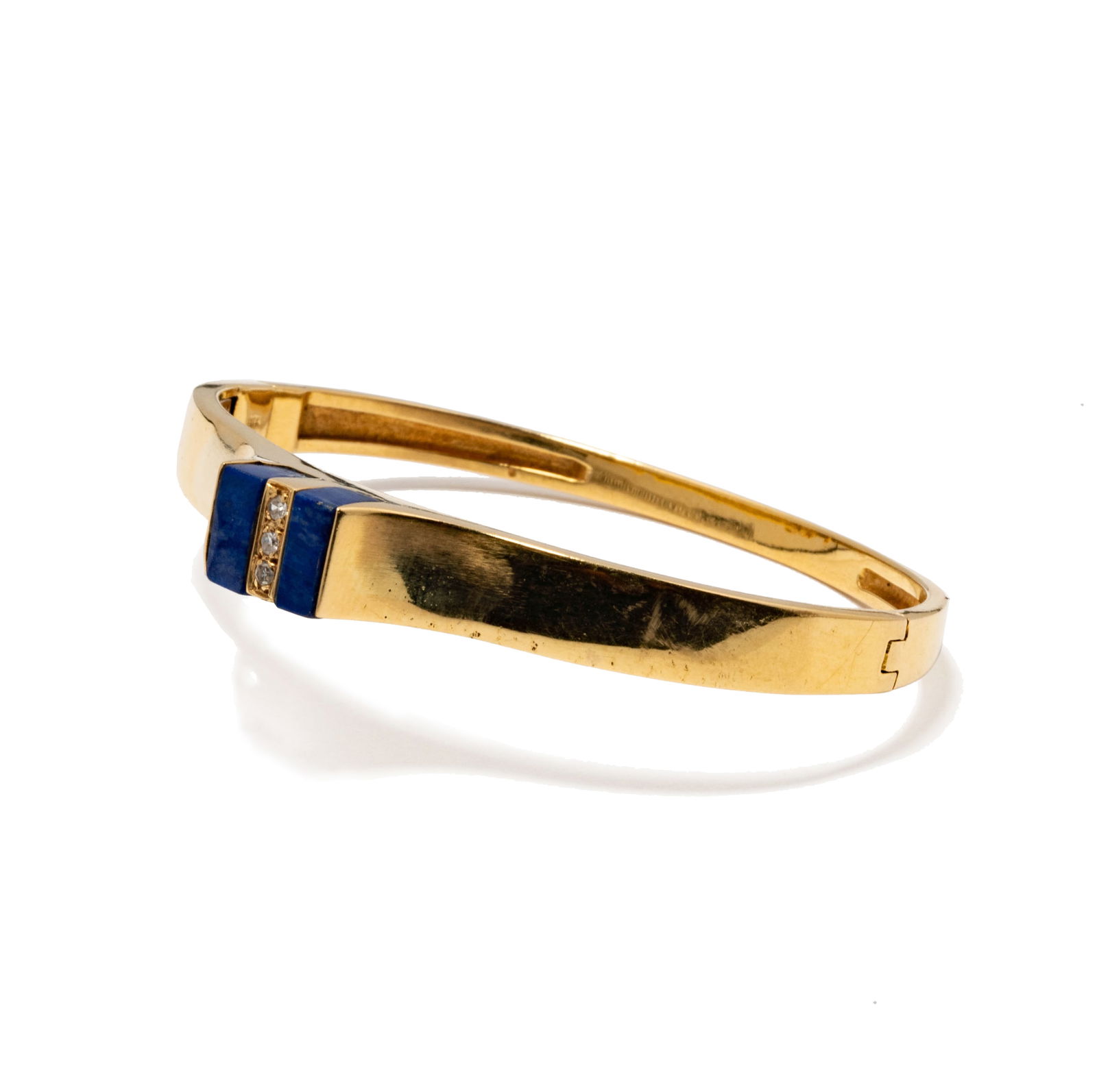 14 Karat Yellow Gold, Lapis and Diamond Hinged Bangle