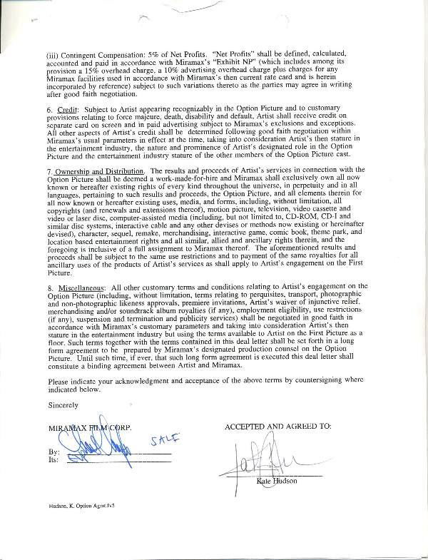 Kate Hudson Document Signed UACC PADA