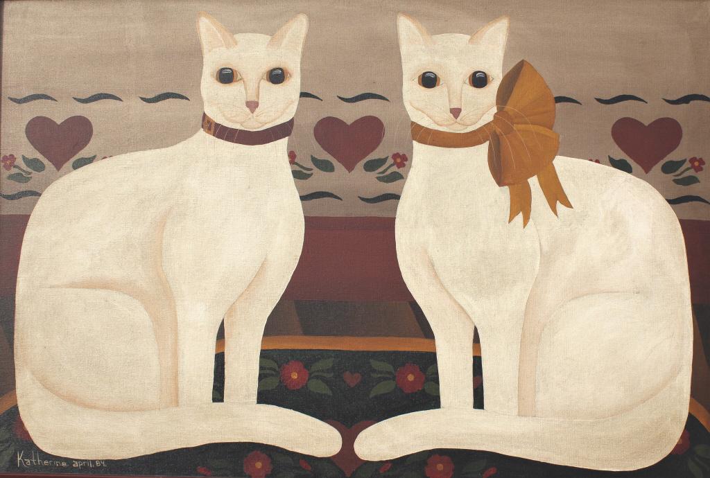 Katherine, 1984, Folk Art, two white Cats