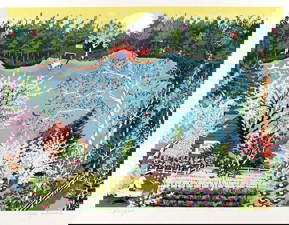kay Ameche Signed Lithograph, Folk Art, Pond"