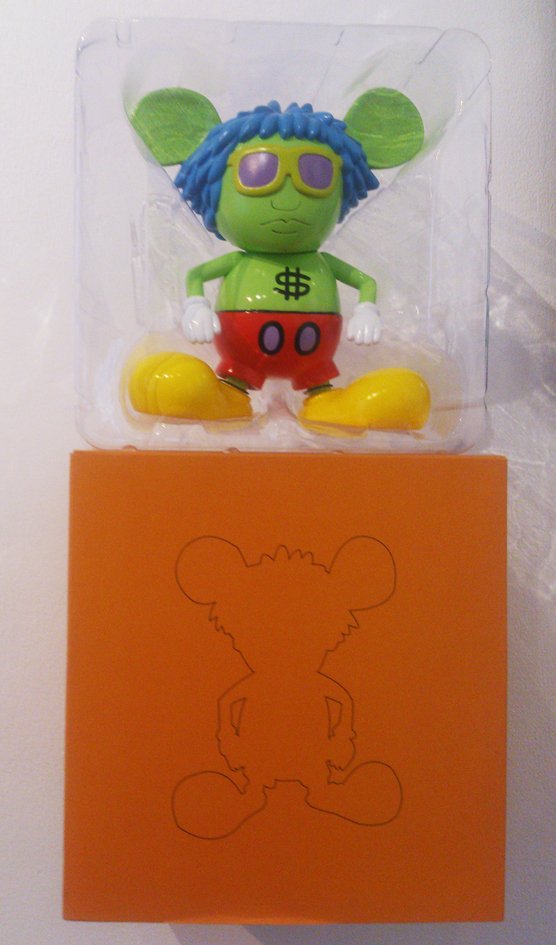 AMERICAN KEITH HARING ANDY MOUSE MARKER PAINTINGKeith Haring, American, 1958 to 1990, color marker painting. The artwork belongs to the Andy Mouse series and depicts a mix of Andy Warhol and Mickey Mouse standing on the ground with money in his hanSee Sold Price