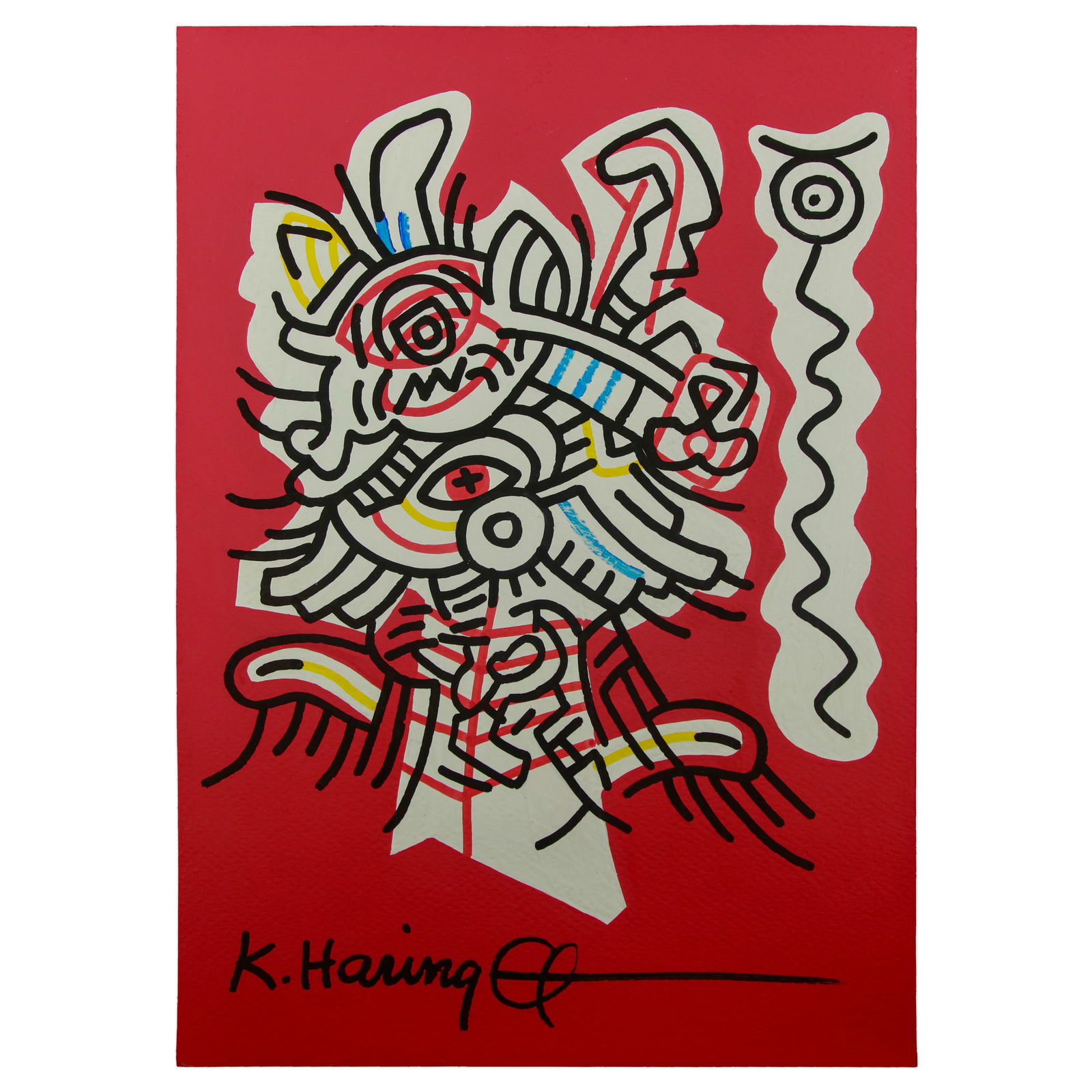 Keith Haring Attributed Artwork: Striking Red & White Abstract Composition
