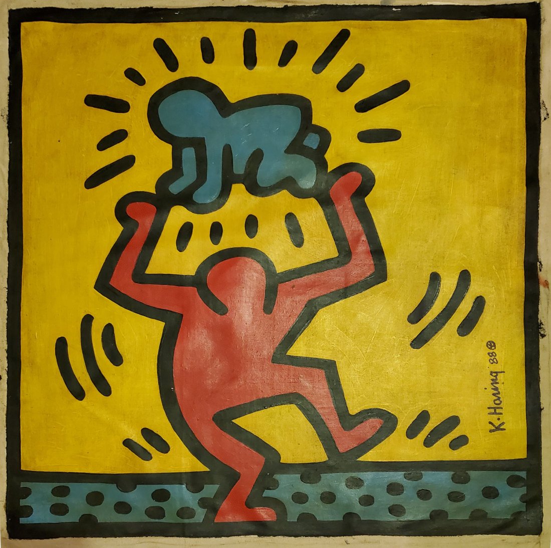 KEITH HARING OIL ON CANVAS SIGNED-COA