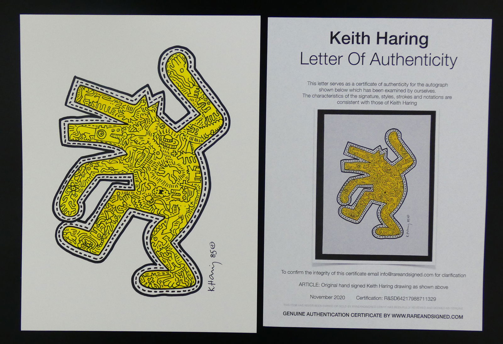 Keith Haring - Yellow Dancing Dog - Drawing - COA