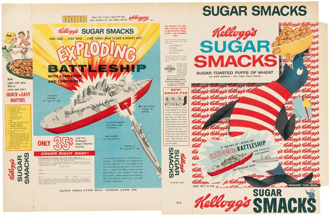 KELLOGG'S "SUGAR SMACKS" FILE COPY CEREAL BOX FLAT WITH