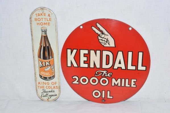 (2) Drink Pepsi-Cola Bottle Cap & Tin Signs LotMar 14, 2026Old Keg Root Beer and Cola Soda Pull Tabs Lot of 2Mar 15, 2026L&M and Winston Double-Sided Flange Cigarette Advertising SignsMar 14, 2026Kernel Renk Seed Corn Dealer and International Fertilizers Single Sided Tin SignMar 20, 2026(2) SSP Kirk's Flake Soap & Star Naptha Washing Powder Door PushesMar 14, 20261950 Kendall The 2000 Mile Oil DST Flange Sign w/ LogoMar 21, 202624" Kendall Motor Oils DST Round Advertising SignMar 21, 2026(2) Heath & Milligan Mfg. & Horn Paints SSP Advertising SignsMar 14, 2026(2) L&M and Kools Cigarette Tin SignsMar 14, 2026Ford A-1 Used Cars 9' SSP Sign w/ LogoMar 21, 202625" Shell Motor Oil Clamshell DSP Advertising SignMar 21, 2026Veedol Motor Oil DSP Tombstone Advertising SignMar 21, 2026Kendall Motor Oil SST Embossed Advertising SignMar 21, 2026Kendall Motor Oil Double Sided Advertising SignMar 21, 2026Kendall Gear Lubrication "Drain and Refill Now!" Cloth Advertising Banner SignMar 21, 2026(2) Yellow Cab Advertising ThermometersMar 14, 2026