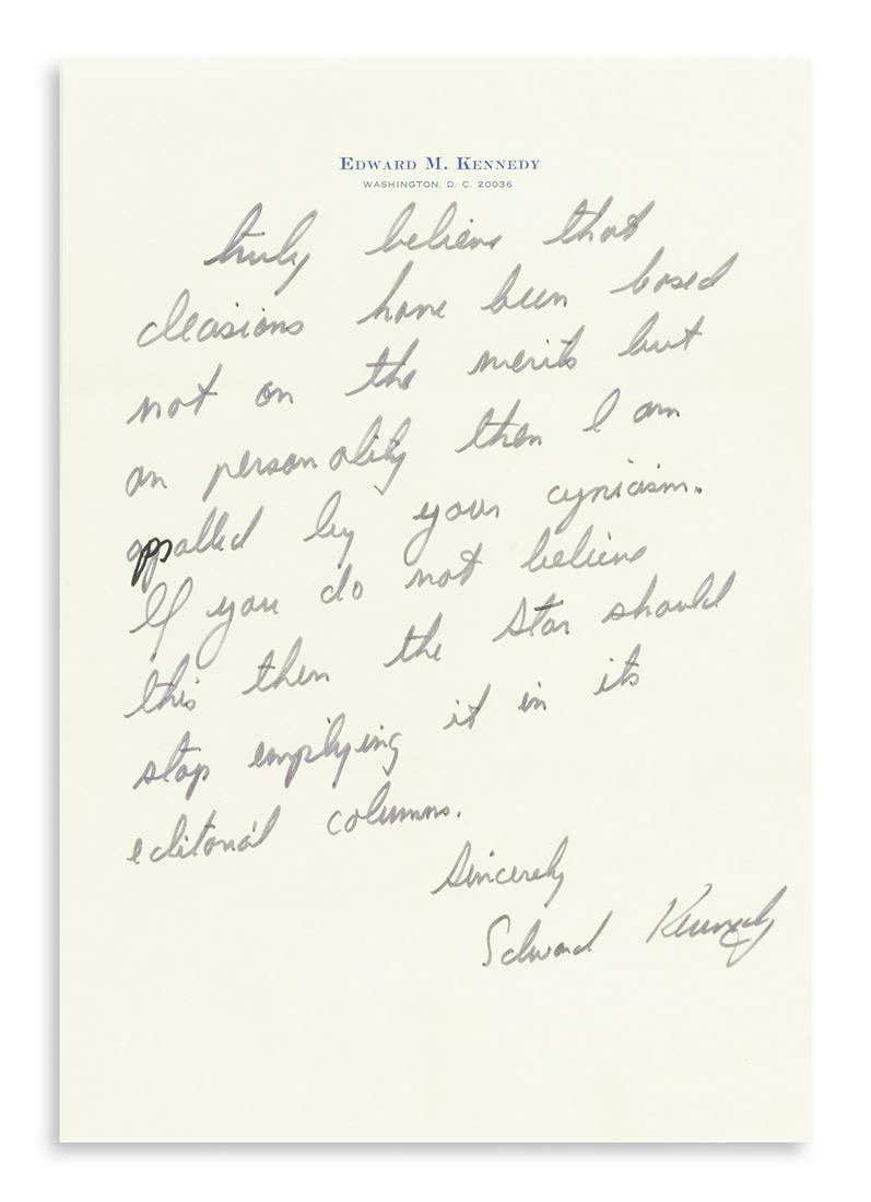 KENNEDY, EDWARD M. Three letters Signed, "Edward