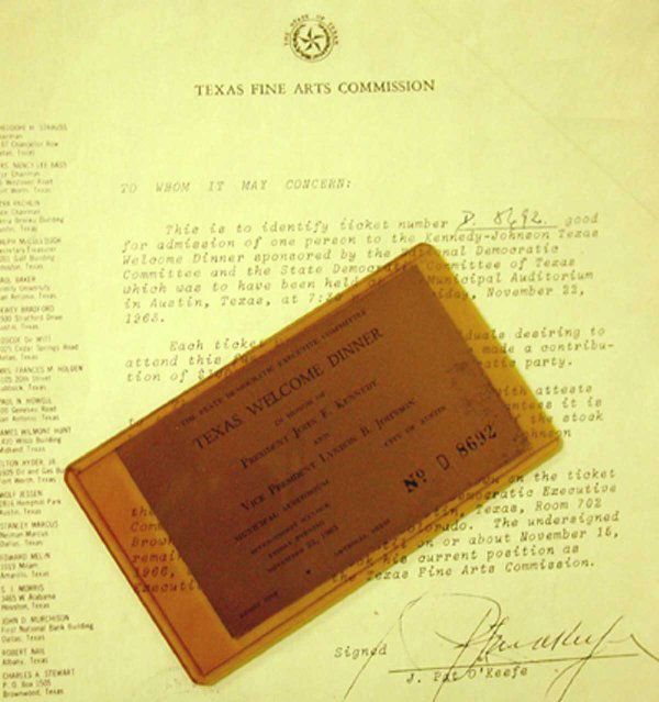 John F. Kennedy – Rare Gold Texas Welcome Dinner Ticket & Invitation – Assassination EveJohn F. Kennedy – Texas Welcome Dinner Invitation – Nov. 22, 1963 – With EnvelopeJohn F. Kennedy – Original 1963 “Texas Welcome Dinner” Broadside Program – DJohn F. Kennedy – Trade Mart Luncheon Invitation with Canceled Stamp – Dallas, November John F. Kennedy – Trade Mart Luncheon Invitation – Dallas, November 22, 19631963 JFK Texas Welcome Dinner Press Ticket – Assassination Day Cancelled EventCarolina Worn Out Kettle Document, Discharge, etc.6 days LeftJohn Connally – Texas Governor – 1963 Amarillo Dinner Ticket – JFK Assassination EEdmund J. Davis – Texas Governor – Autographed Letter (ALS) Re. Warning Regarding Judge American Bank Note Co. Common Stock Certificate6 days LeftJFK Assassination Dallas Invitation to Trade Mart, Autographed by 17 VIPs & Family MembersPennsylvania Company $1,000 9% Sinking Fund6 days LeftFoster Meekins 5th Sgt. 34th Mass appointment6 days LeftJack Ruby – Silver “Spur” Sales Nightclub Business Card – Dallas, TexasJohn F. Kennedy & Jacqueline Kennedy – Houston Reception Photograph – Nov. 21, 1963 RStephen F. Austin Signed Texian Loan Certificate3 days Left