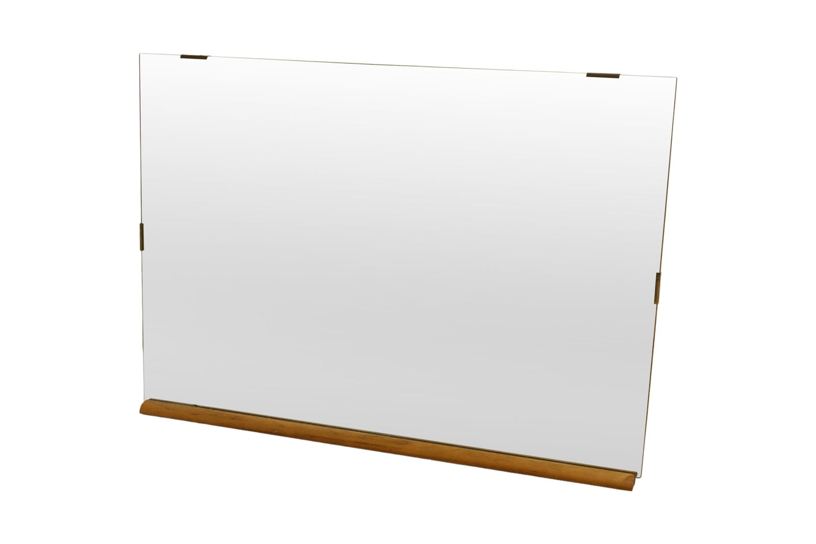 SoldKent Coffey- "The Sequence" - MirrorA Kent Coffey mirror with wood accent on bottom and brass clips on edges Dimensions:32.5x46x4See Sold Price