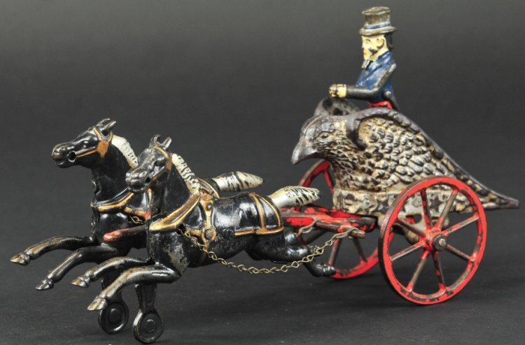 Cast Iron and Misc. Toy LotFeb 21, 2026(2) CAST IRON HORSE-DRAWN TOYS, FIRE HOSE WAGON & HARNESSED HORSESFeb 20, 2026Cast Iron Sulky Cart, Horse, and Driver. Appears to be original paint, unusual spring mechanism, 12"Feb 24, 2026BRONZE CUO GOLD AND SILVER CHARIOT FIGURES OF THE QIN DYNASTYFeb 27, 2026A Han Dynasty copper cuo gold and silver horse-drawn carriageMar 07, 2026Double Mule Polar Ice Wagon (Rare)2 days LeftSingle Horse Hook and Ladder Cast Iron Toy2 days LeftCast Iron and Pressed Steel Jockey Bell Toy. Watrous Mfg. C...Feb 19, 202613" Large Antique Rare, Jeweled Sterling Silver & Enamel Chariot pulled by 4 Horses SculptureFeb 26, 2026Large Wood Coach Pulled by 2 Platform HorsesFeb 28, 2026Dave McGary (American, 1958-2013) 'Stolen Honor' Bronze SculptureFeb 24, 2026Vintage Tin Litho Rodeo Joe / Pioneer Spirit Toys4 days LeftBliss Rough and Ready Fire Pumper ~ Paper on WoodFeb 28, 2026ISSMAYER HORSELESS AUTO DELIVERY WAGONFeb 27, 2026Single Horse Cast Iron Pumper2 days LeftFERNAND MARTIN HANSOM CABFeb 27, 2026