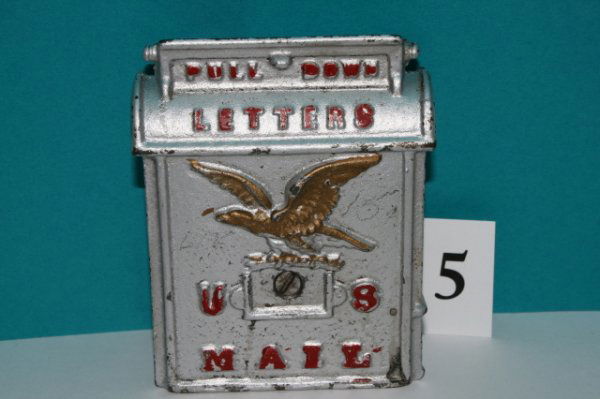 Vintage Kennedy Fishing Tackle Box With 53 Vintage CrankbaitsMar 22, 2026Antique Cast Iron US Mail Box BankMar 07, 2026U.S. Mail Cast Iron Embossed Mailbox5 days LeftNational Savings Bank with Eagle DecorationMar 07, 2026Antique Cast Iron U.S. Mail Street Letter Box by Bridgeport Castings Co.5 days LeftNational Savings Bank with Eagle DecorationMar 07, 2026Vintage Large Post Office Stamp Machine US Meter Art Deco Nickel Box Mail2 days LeftCountertop postage stamp vendorMar 28, 2026The Eagle BankMar 07, 2026Home Safe Deposit - ScarceMar 07, 2026Countertop postage stamp vendorMar 28, 2026Postage Stamp Machine Co. Stamp DispenserMar 01, 2026(2) CAST IRON "U.S. MAIL" BANKSMar 15, 2026State Bank - Nickel Plated with HighlightsMar 07, 2026Grand Cabinet BankMar 07, 2026WALNUT POST OFFICE BOX BANKMar 15, 2026