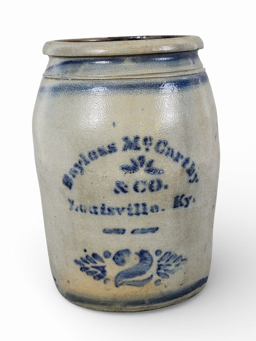 JAS. HAMILTON & CO. (GREENSBORO, PENNSYLVANIA) COBALT-DECORATED STONEWARE TWO-GALLON JAR.4 days LeftWestern Stoneware Advertising Beater Jar, Like This Jar The Quality Of Our Goods Excell-Moulton, ...Bedford, PA Cobalt Decorated Stoneware Advertising Merchant JarMar 01, 2026ANTIQUE 2 GALLON STONEWARE PRESERVE JAR 16"Feb 23, 2026Eastern Stoneware 1 Gallon Crock, stamped H. M. Whitman, Havana, N.Y., salt glaze w/hand-painted ...Stoneware Ovoid Jar, stamped T.P. Mead Portage Co. (Ohio), salt glaze w/cobalt blue accents & app...Jug Johnson, South Carolina, 5-Gallon ChurnMar 07, 2026Stoneware Ovoid Jar, unmarked salt glaze but stamped 1 1/2 in a circle that is consistent w/those...Stoneware Ovoid Jar, unmarked, salt-glazed w/hand-painted cobalt blue brushed design (may be bru...Eastern Stoneware Storage Jar, stamped Sold By J. Conaughty, Waterford, NY, unique multicolored b...An Outstanding Pennsylvania Stoneware Crock for EJ MILLER Va10 hrs LeftF. Woodworth Burlington VT Stoneware Jar6 days LeftA.P. Donaghho Stoneware Wax Sealer Jar. Stenciled Parkersburg W.V. Chip on rim. 8"HFeb 24, 2026Minnesota Stoneware 1 Gallon Salt Glaze Crock w/Lid, embossed bottom reads "Minnesota Stoneware C...Cobalt Decorated Salt Glazed Stoneware Crock with Lug HandlesMar 01, 2026A.P. Donaghho Stoneware Wax Sealer Jar. Stenciled Parkersburg W.V. Some flakes to inner rim. 10"HFeb 24, 2026