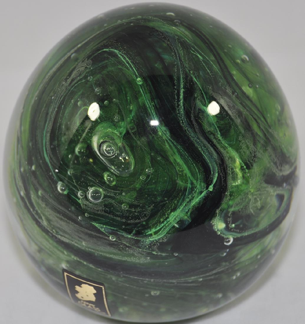 SoldVINTAGE KERRY GLASS PAPERWEIGHT EMERALD GREEN HAND MADE IRELAND SWIRLS & BUBBLESTitle: VINTAGE KERRY GLASS PAPERWEIGHT EMERALD GREEN HAND MADE IRELAND SWIRLS & BUBBLES Date/Period: UNKNOWN Dimension: APPROX 3 X 2.75 Material: GLASS Additional Information: VINTAGE KERRY GLASS PAPESee Sold Price