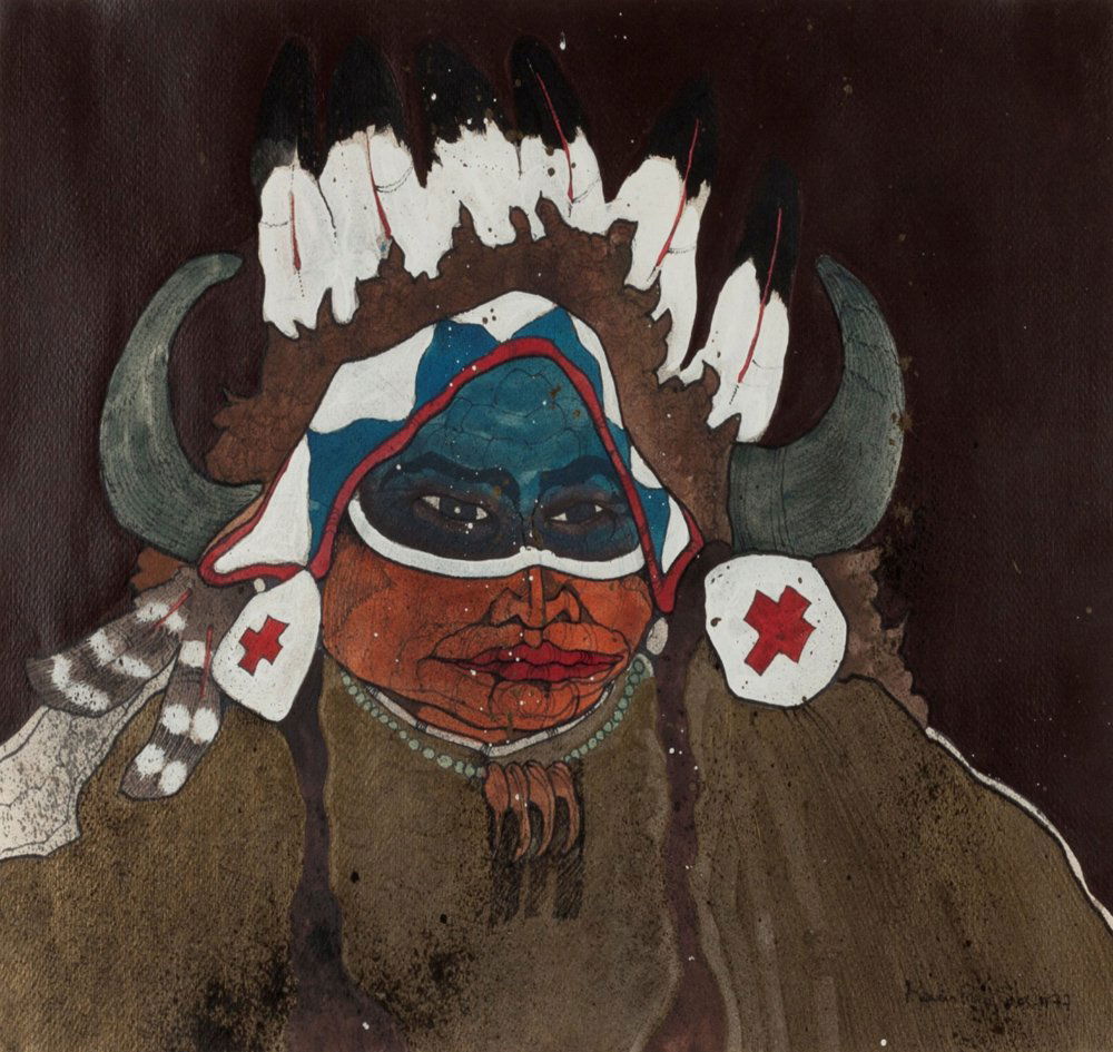 1980 Kevin Red Star Native American Crow Res Cop I Sepia Tone Etching