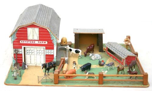 Lot of Vintage ToysMar 04, 2026AMERICAN FOLK ART CARVED AND PAINTED WHIRLIGIG / JIG DANCERS, LOT OF TWOMar 06, 2026VINTAGE WOODEN TOY FARM SET WITH PRESSED AND PRINTED DECORATION, LOT OF 20Mar 05, 2026Lot of Small Toys incl Teenage Mutant Ninja Turtles TMNT, Plastic Animals, Plastic Dinosaur, Dogs, E2 days LeftVintage Toy Assortment LotLOT OF GERMAN PUTZ FARM ANIMALS5 days LeftJohn Deere & other Tractors, trailers, implementsGroup of antique wood & cardboard buildingsMar 05, 2026Original Buddy L Cattle Transport Truck w/ 2 CowsVintage Fisher Price Family Play FarmModel of 2 draft horses hitched to hay wagonMar 27, 2026Model of 2 draft horses hitched to wagonMar 27, 2026Model of 2-horse hitch with 3-seat dog cartMar 27, 2026Antique folk art wood Christmas village country schoolhouse.Mar 06, 2026Antique folk art wood Christmas village storeMar 06, 2026Antique German woolly sheep on platform.Mar 05, 2026