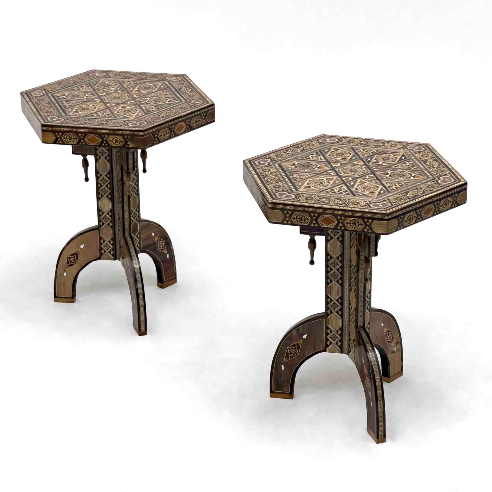 Khatam Hexagonal Side Tables, Pair