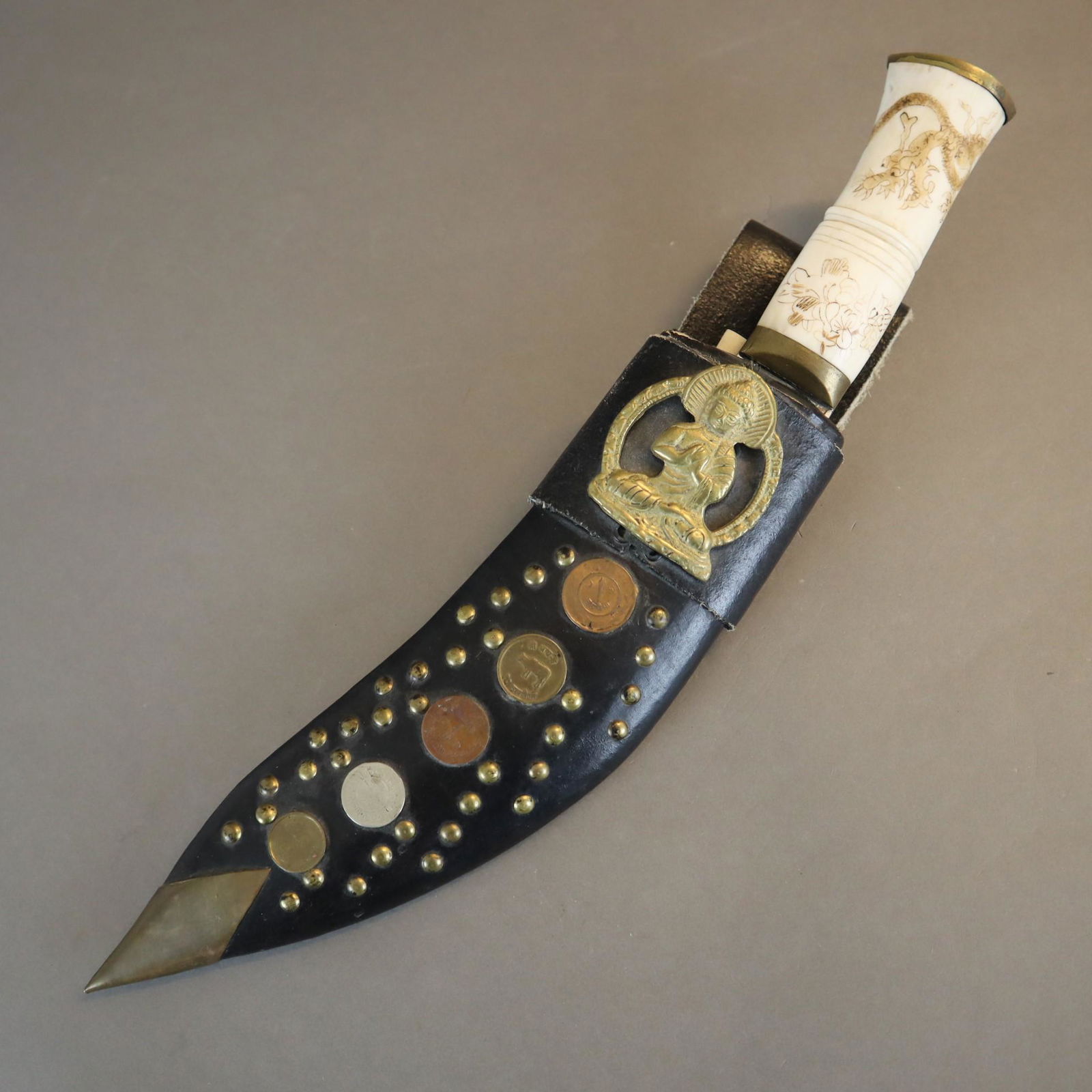 Antique Nepalese Kukri (Khukuri) with Inscribed Blade & Decorated Scabbard, plus Companion KnivesSofe Design Auctions4.4(172)$3005 days Left