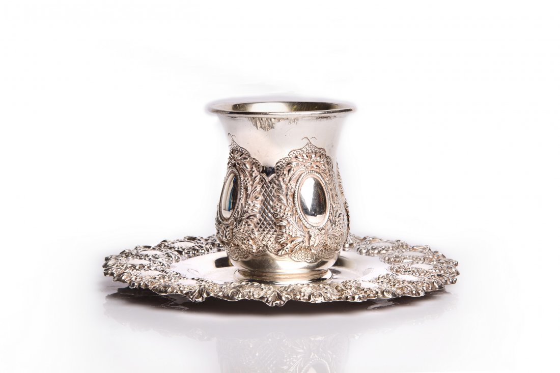 Judaica Sterling Silver Kiddish Cup w/ Under Plate