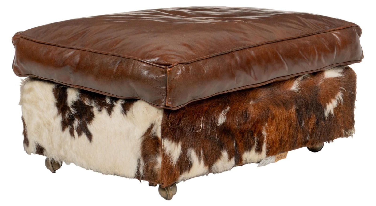 Handcrafted Leather Ottoman American West Style Brown Finish