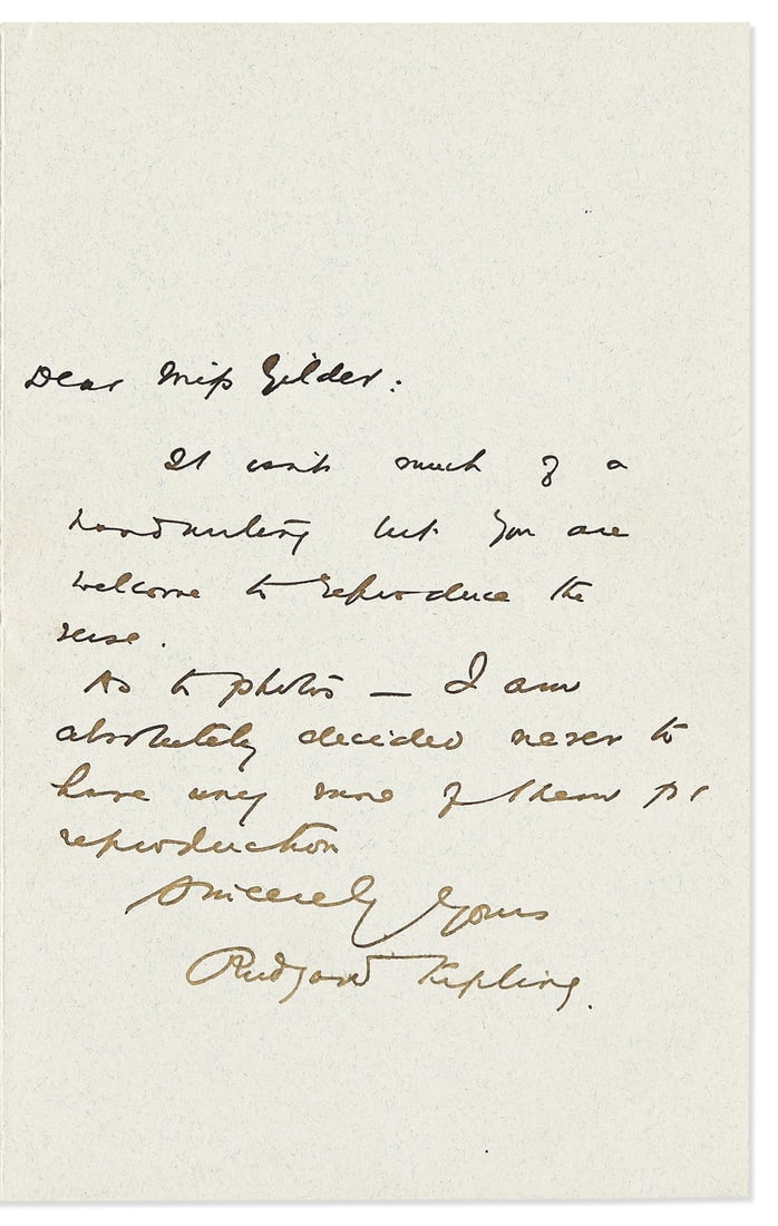 KIPLING, RUDYARD. Autograph Letter Signed,